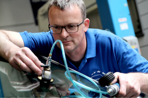 Sollte es der Schaden zulassen, so können wir den Sprung mit synthetischen Spezialharzen rechtzeitig reparieren, damit dieser sich nicht weiter ausdehnt und die Scheibe stabil bleibt. Ist der Schaden zu groß oder befindet er sich im Sichtbereich des Fahrers, so ist ein Scheibenaustausch unumgänglich. Dabei erfolgt die Montage durch unsere Glasspezialisten unter Verwendung von qualitativ hochwertigen Scheiben und Hochleistungsklebstoff.